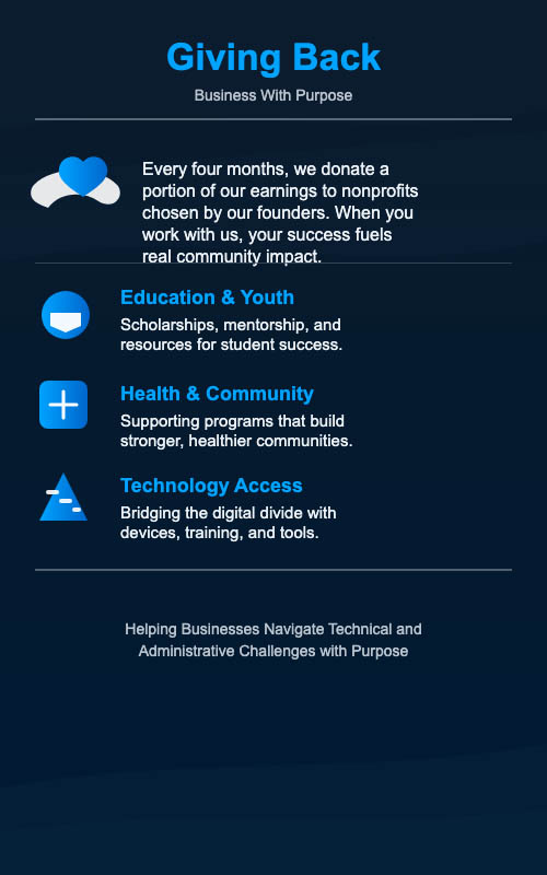 At TrueNorth Solutions, we believe success is about more than profit — it’s about making a difference. From day one, our company was built on the idea that business should serve a higher purpose. That’s why we’ve embedded giving back directly into our business model.