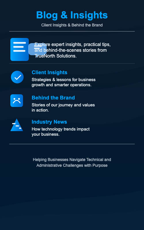 At TrueNorth Solutions, we believe knowledge should be shared — not hidden behind buzzwords or inflated consulting fees. That’s why our blog is dedicated to giving you clear, actionable insights you can apply to your business today.